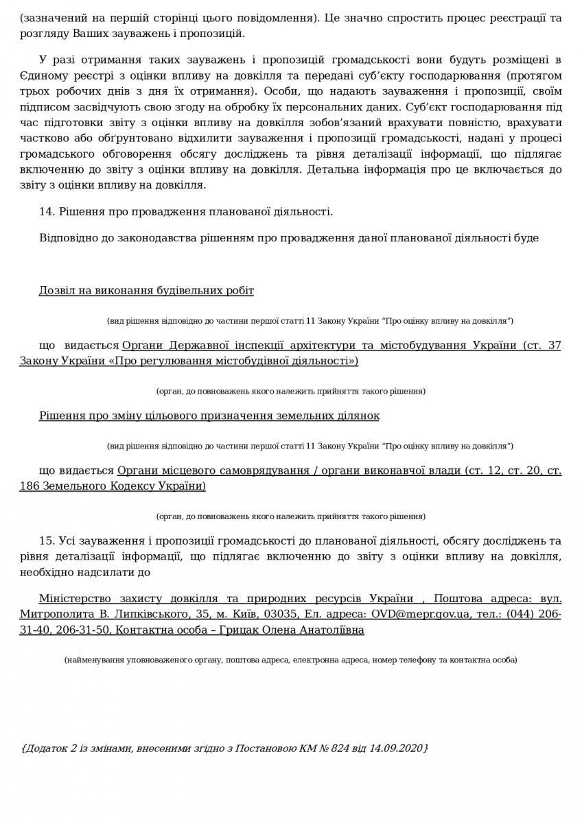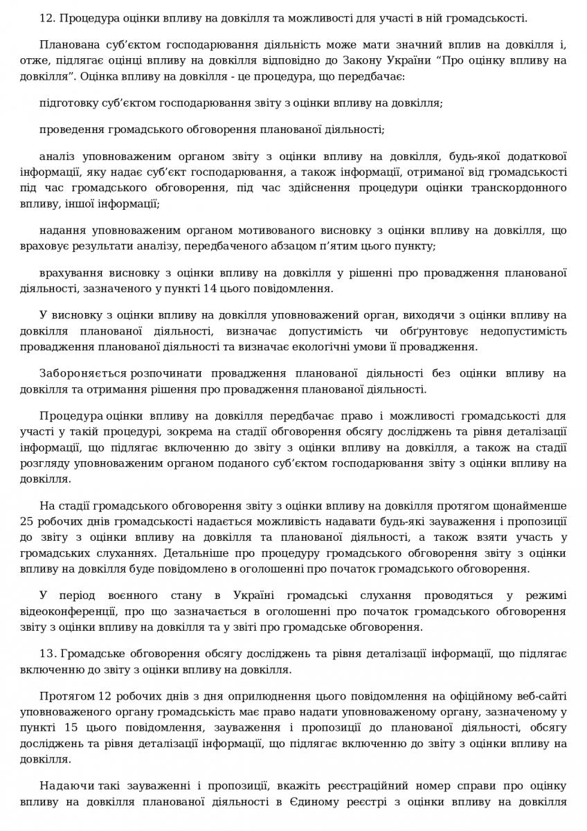 ПОВІДОМЛЕННЯ про плановану діяльність, яка підлягає оцінці впливу на довкілля